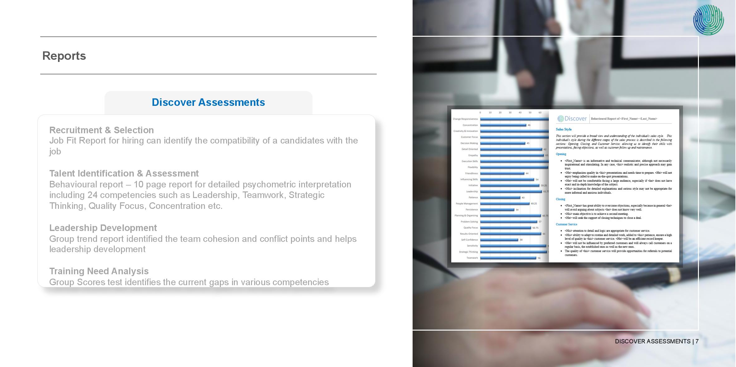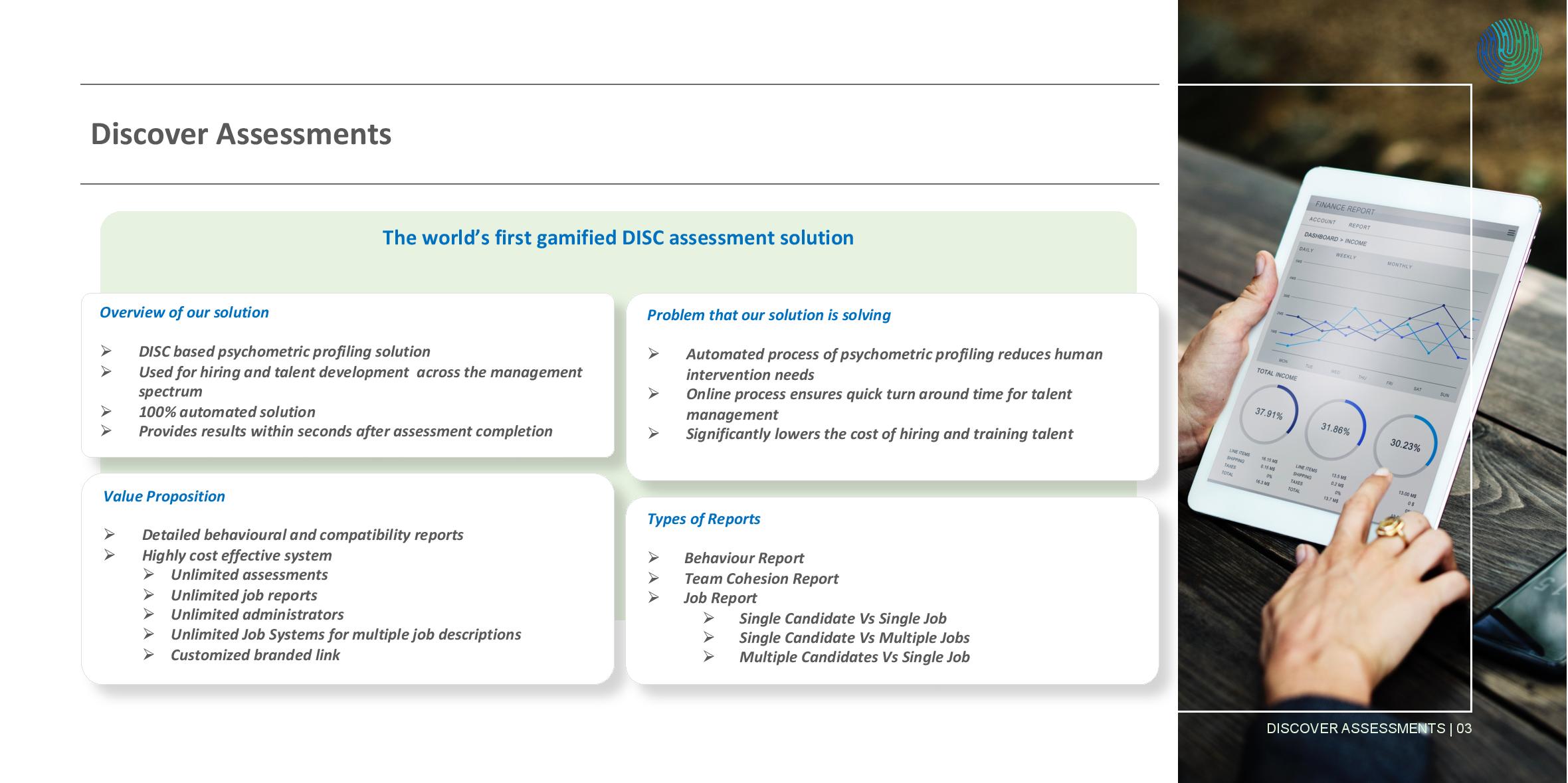 Behavioral Assessment’s is world’s first and only gamified DISC based psychometric assessment tool which allows you to generate behavioral profile of an individual.
